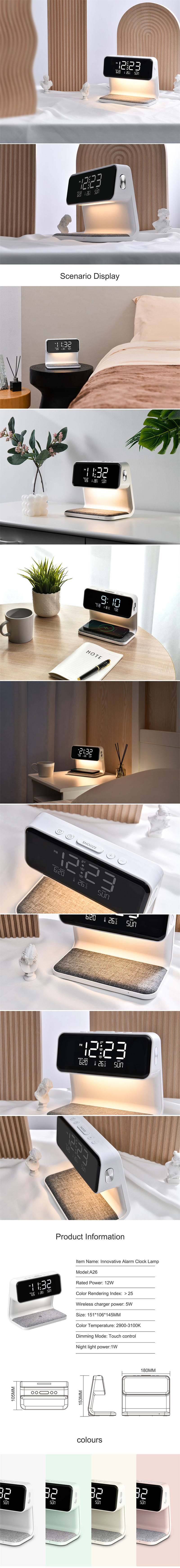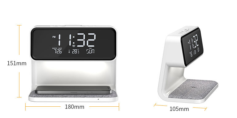 • Creative 3 In 1 Bedside Lamp Wireless Charging LCD Screen Alarm Clock Wireless Phone Charger